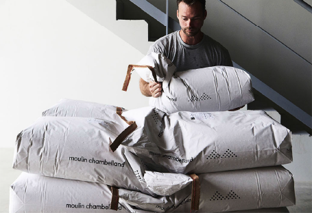 グルテンフリー保証のついた粉を製粉するためには、シリアルの製粉に一度も使用されたことのない、真新しい製粉機を扱う業者を見つけることが最重要課題でしたが、フランス国内での実現は不可能でした。それが理由で、シャンベランはメゾン独自の製粉所を設立するに至ったのです。こうして、製粉職人のステファヌ・ピシャールと協力し、アルプ=ド=オート=プロヴァンスンス県(フランス)のマリジャイに製粉所が誕生しました。設立までには、製粉機 を探し、地理的条件をクリアできる製粉所の建築スタイルを模索し、製造ラインやストックスペースを編成するなど、さまざまな規格や法規に合致するように多くの試行錯誤が繰り返されました。